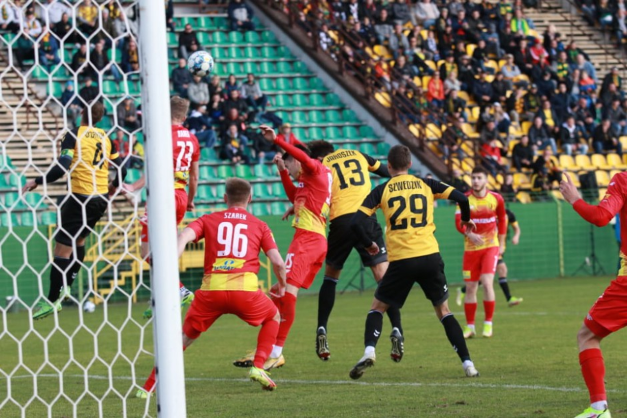 W 86. minucie „żółto-czerwoni” znowu dobrze rozegrali stały fragment. Marko Pervan dośrodkował, a piłka po uderzeniu Adriana Danka trafiła w poprzeczkę. Następnie dobitkę Piotra Malarczyka wybronił Patryk Królczyk. Gospodarze wytrzymali napór i mogli cieszyć się z trzech punktów.
