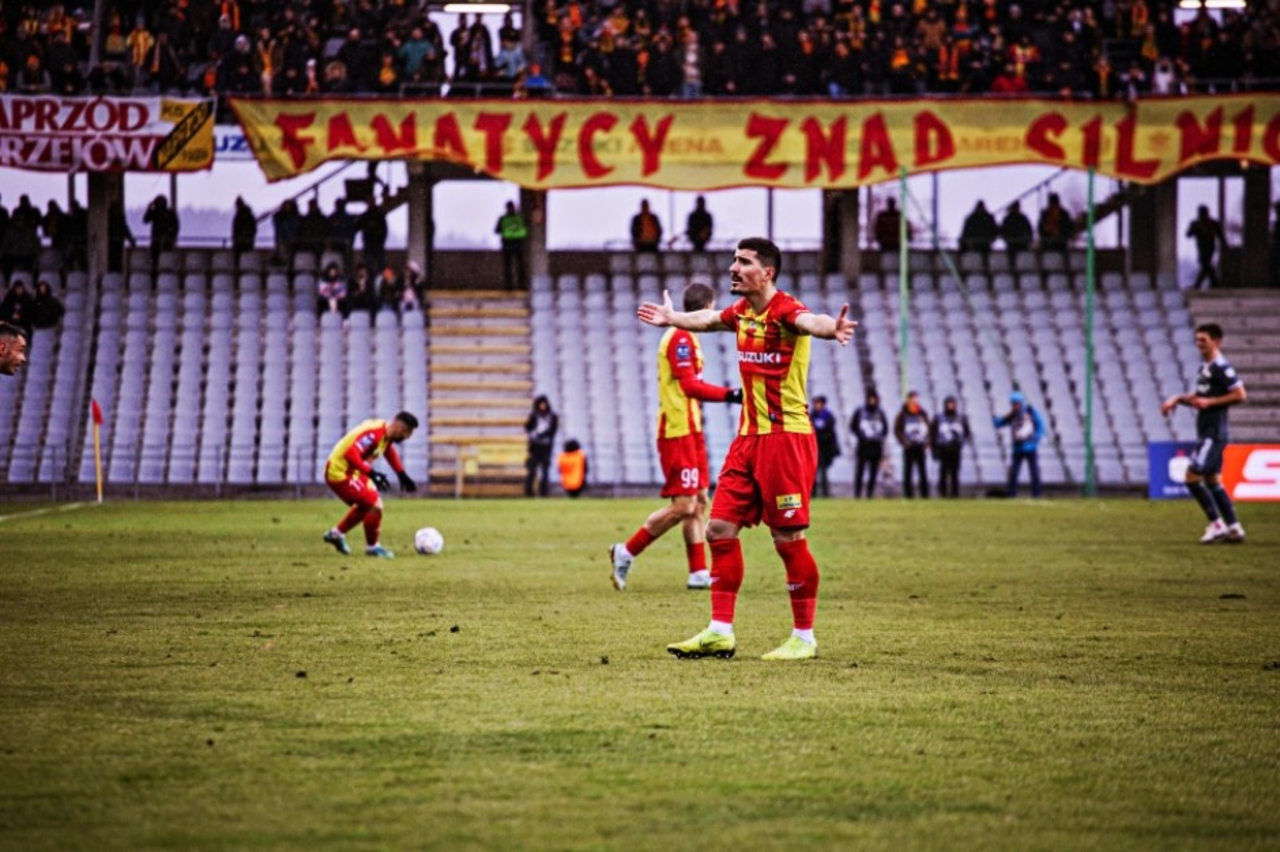 W doliczonym czasie dobrą akcję na skrzydle przeprowadził Jacek Kiełb. Dośrodkowaną przez niego piłkę dobrze zgrał Jewgienij Szykawka, a do siatki mocnym strzałem skierował ją Kacper Kostorz.