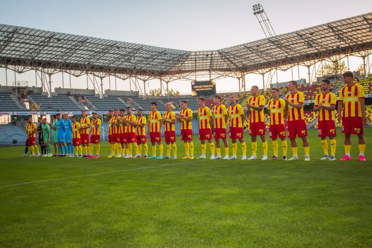 Następnie na murawę zaczęli wybiegać zawodnicy pierwszego zespołu. Pierwszy raz przed fanami „żółto-czerwonych” zaprezentowali się bramkarz Xavier Dziekoński, pomocnicy Martin Remacle, Mateusz Czyżycki i Szymon Gałązka oraz napastnik Adrian Dalmau.