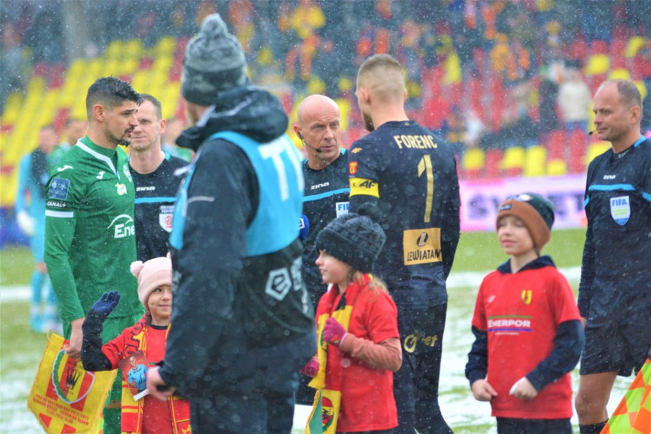 Arbiter z Płocka długo prowadził spotkanie bez zarzutu. Podejmował szybkie decyzje, trzymał ciśnienie derbowego spotkania.
