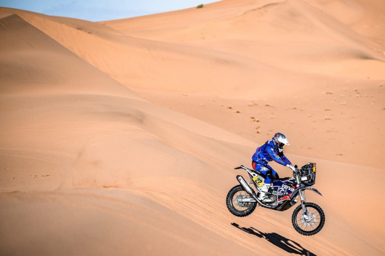 Jako pierwszy wyruszył na nią 25-latek z Piekoszowa. Jechał równym, dobrym tempem. W okolicach setnego kilometra dogonili go zawodnicy zespołów fabrycznych: Argentyńczyk Luciano Benavides i Amerykanin Ricky Brabec. Motocyklista Orlen Teamu starał się dotrzymać im kroku. Na 240 kilometrze zajmował niezłe 21. miejsce. Na kolejnym punkcie kontrolnym osunął się jednak o 30 pozycji.