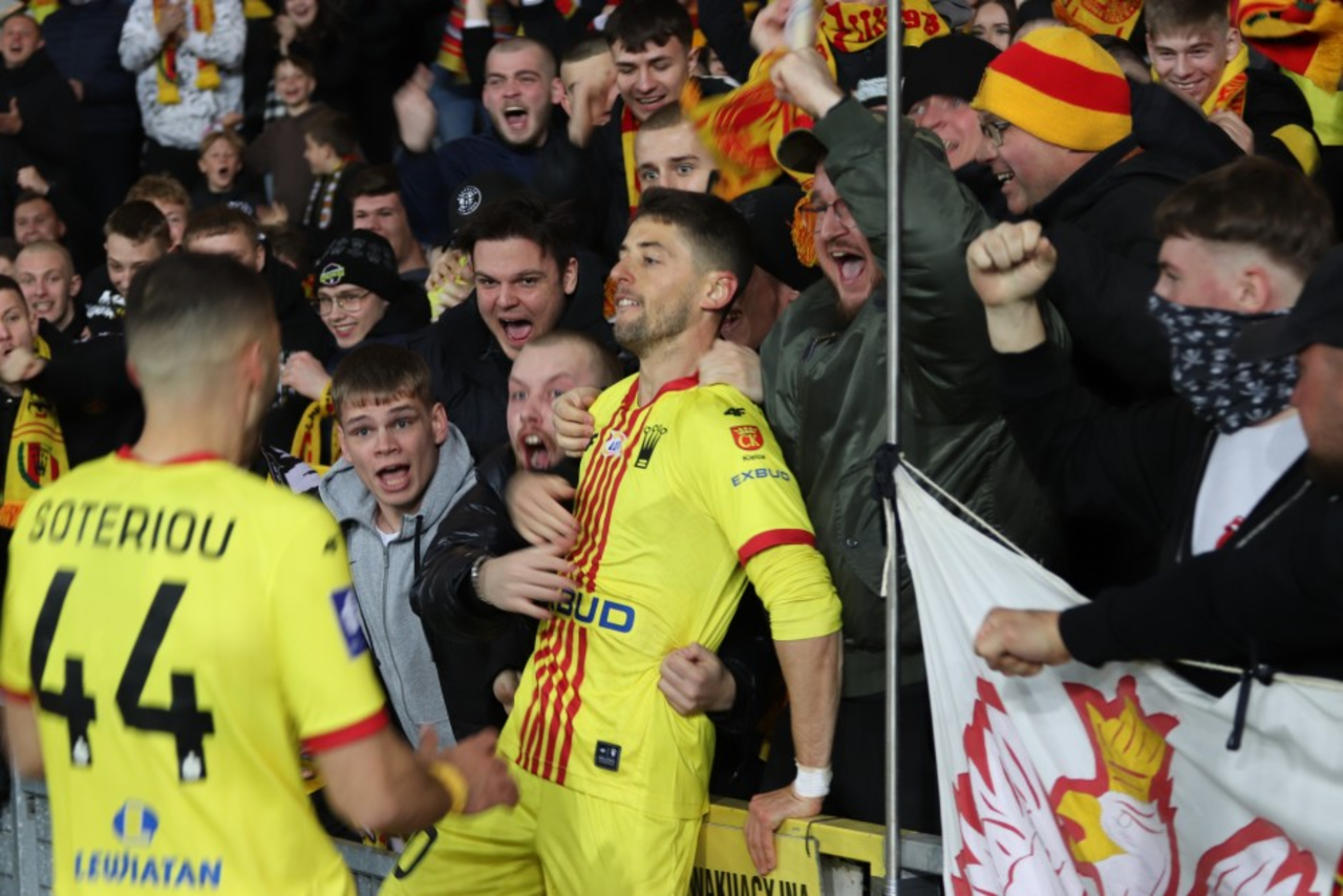 69’ – Korona zagrażała głównie po stałych fragmentach. Może na placu gry nie było Fornalczyka i jego rajdów, ale znalazł się na nim Dawid Błanik. Skrzydłowy jeszcze raz udowodnił, że ma ponadprzeciętnie ułożoną prawą nogę. Tym razem odnalazł w polu karnym Konstantinosa Soteirou. Cypryjczyk nadał kierunku i prędkości bitej w światło bramki futbolówki z lewej strony boiska. Gikiewicz nie miał nic do powiedzenia.