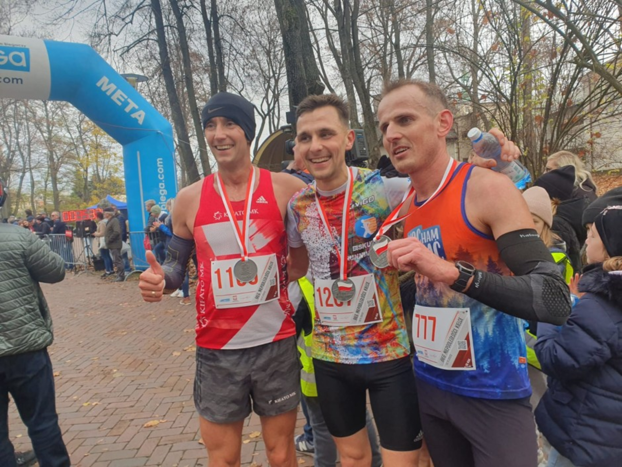 Obaj znani świętokrzyscy zawodnicy wbiegli na metę, trzymając się za dłonie. Uzyskali czas 32 minuty i 49 sekund. Trzeci z wynikiem 33:14 był Michał Bąk.