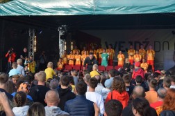 Dwudziestu siedmiu piłkarzy pojawiło się na scenie ustawionej na kieleckim Rynku podczas przedsezonowej prezentacji Korony. Dziewięciu z nich w sobotę odebrało "żółto-czerwone" koszulki z rąk prezesa klubu, Krzysztofa Zająca.