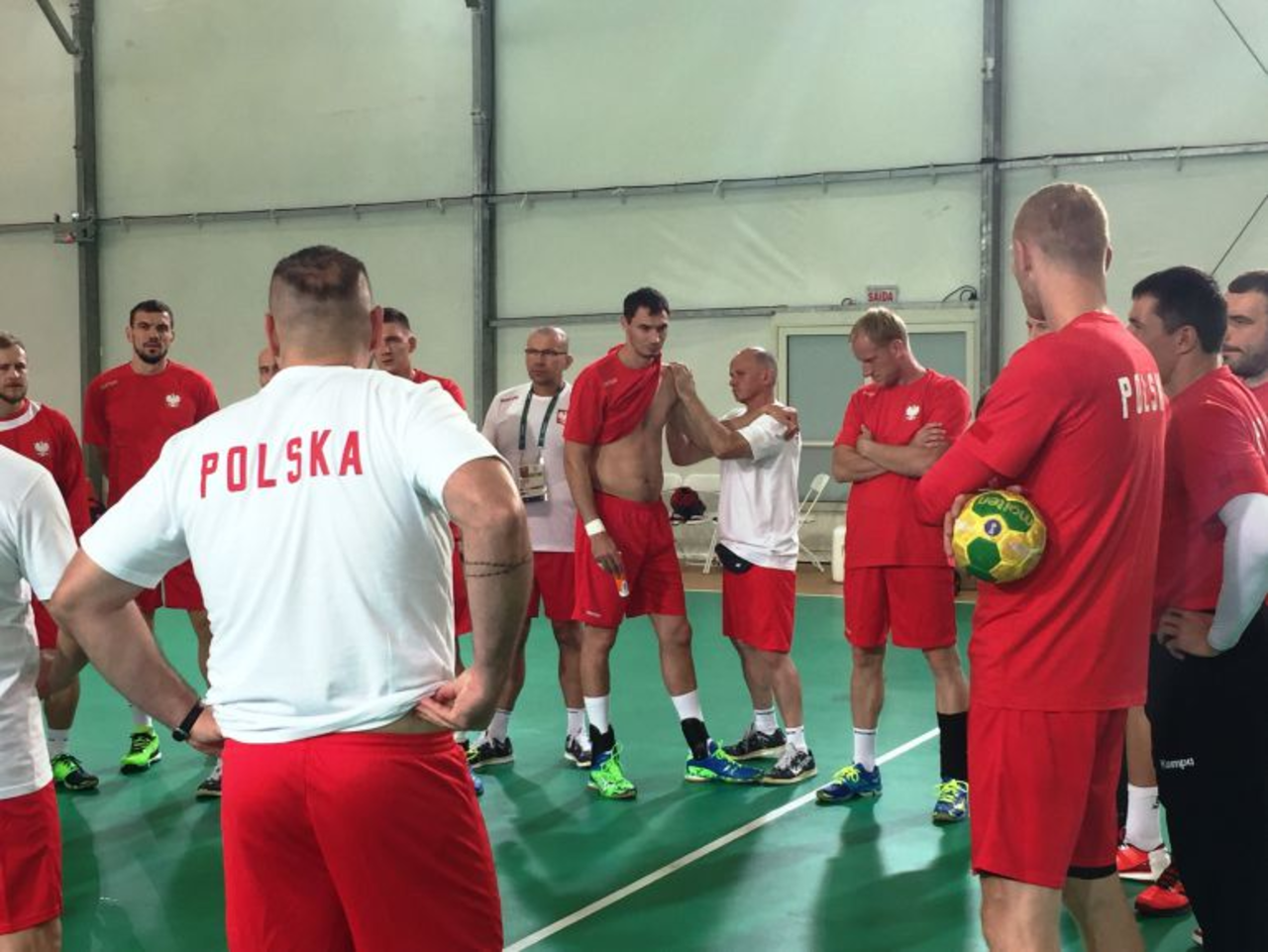 Polacy odbyli już pierwsze treningi w hali rozgrzewkowej ulokowanej przy Arenie Przyszłości – głównym obiekcie turnieju olimpijskiego piłkarzy ręcznych .