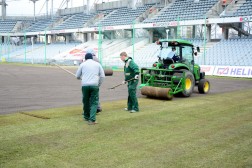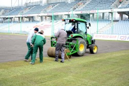Prace przy rozkładaniu murawy mają zakończyć się w czwartek popołudniu, na trzy dni przed meczem z Cracovią Kraków. - Na chwilę obecną termin nie jest zagrożony. Tiry z trawą będą przyjeżdżały sukcesywnie. Po zakończeniu prac przy rozkładaniu odbędzie się podwójne wałowanie ciężkim wałem. Zostaną wykonane również pomiary przed geodetę, który wyznaczy punkty umożliwiające naszym pracownikom odpowiednie namalowanie linii wyznaczających boisko - zakończył Domaradzki.