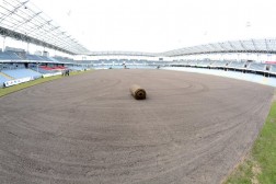 We wtorek rano na Kolporter Arenie zostały rozwinięte pierwsze rolki nowej trawy, która do Kielc sukcesywnie przywożona jest z jednej z najlepszych europejskich plantacji spod Budapesztu.