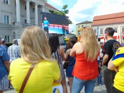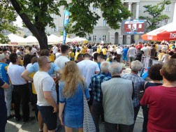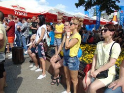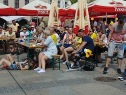 Tłum wypełniający Rynek bo brzegi wspólnie ogląda rozgrywki sportowe na dwóch telebimach. Ekrany zawisły po dwóch stronach kieleckiego Rynku. Pierwszy przy wlocie ul. Bodzentyńskiej, drugi na fasadzie Urzędu Miasta. Tuż obok wejścia do kieleckiego Ratusza ustawiona jest także strefa rodzinna, gdzie czas spędzają najmłodsi.