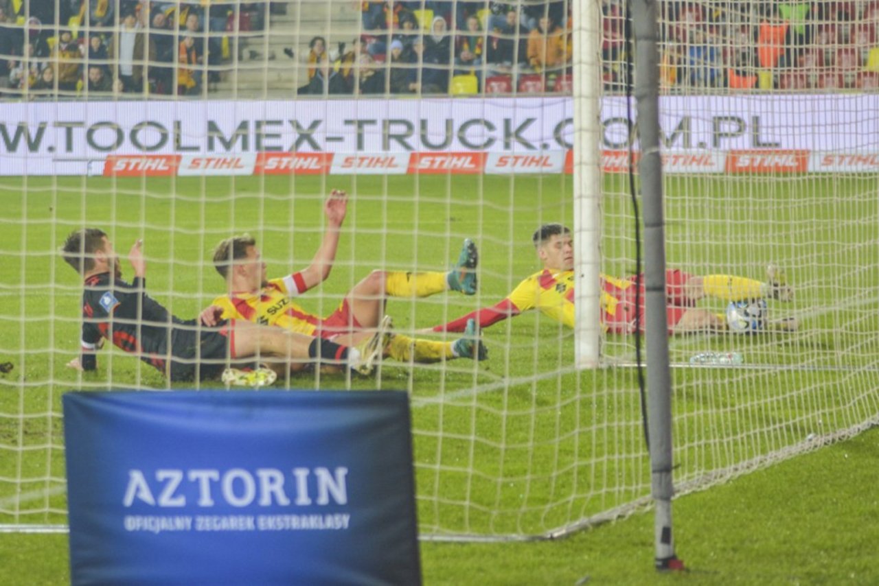 Jedna z tych akcji osiągnęła nawet niebotyczną popularność w internecie. Mowa o wydarzeniach z 63. minuty, gdy pomocnik Korony, Mateusz Czyżycki, kąśliwie wstrzelił futbolówkę na dalszy słupek, a aż pięciu piłkarzy, jeden za drugim mijali się z piłką, wślizgiem próbując przeciąć wyznaczoną przez nią linię podania.