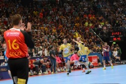 Na kilkanaście minut przed rozpoczęciem spotkania w wypełnionej po brzegi Lanxess Arenie zgasło światło. Z ciemności wyłoniło się czterech wokalistów, a podczas wykonywanej przez nich piosenki tancerki podnosiły się na linach do sufitu. Wyglądało to naprawdę efektownie. Moment później spiker przywitał zawodników obu zespołów. Najpierw na parkiecie pojawili się kapitanowie Grzegorz Tkaczyk i Victor Thomas, którego co ciekawe z trybun wspierał Carles Puyol, były 'El Capitano” piłkarskiej Blaugrany. Podczas przywitania Sergiej Rutenka oraz Tałant Dujszebajew zostali wygwizdani przez niemiecką część publiczności.