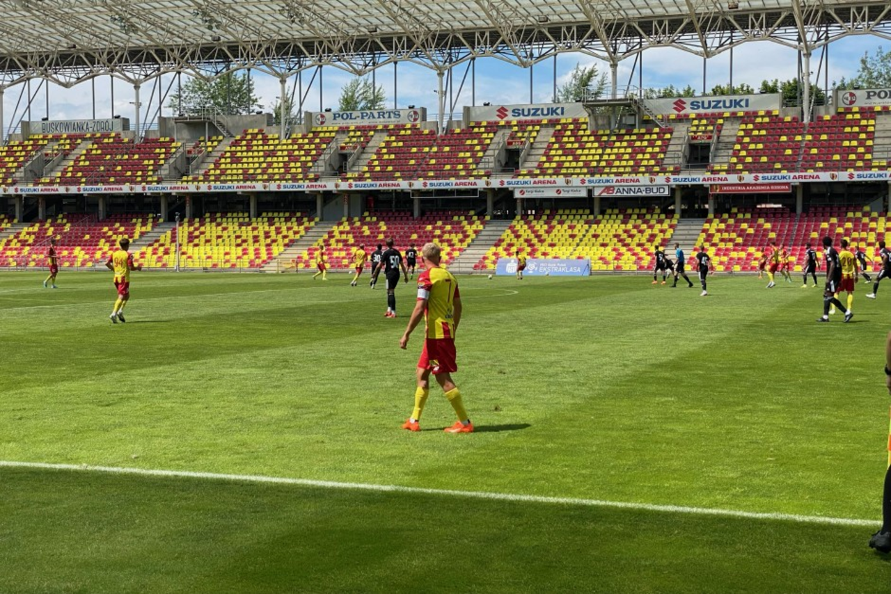 Do końca pierwszej części gry to kielczanie stwarzali okazje. Z dobrej strony pokazywali się młodzi Koroniarze – Jakub Konstantyn i Miłosz Strzeboński. Ten drugi wpisał się nawet na listę, pokonując golkipera Górnika ładnym strzałem zza szesnastego metra.