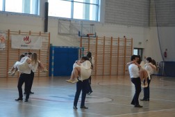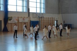 Zmagania sportowe piętnastu zespołów na hali UJK uświetnił pokaz taneczny uczniów z IV Liceum Ogólnokształcącego w Kielcach.