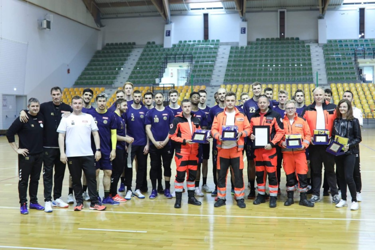 Szczypiorniści Łomży Vive Kielce podziękowali ratownikom z Grupy Ratownictwa PCK Kielce, którzy podczas ostatniego meczu z Montpellier w Hali Legionów uratowali życie kibica, który miał zawał.