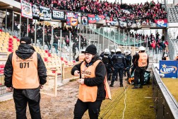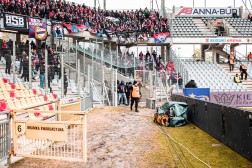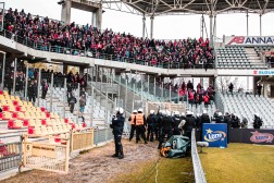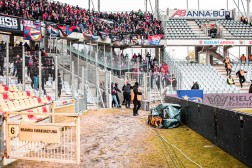 Podczas niedzielnego meczu Korony Kielce z Rakowem Częstochowa było bardzo gorąco na trybunach. W przerwie spotkania fani „żółto-czerwonych” zabrali flagę z sektora gości. Kibice z Częstochowa wyłamali kilka krzesełek, a interweniować musiała policja.