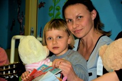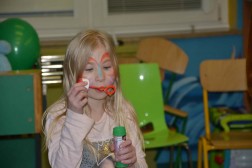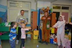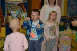 Kolejna atrakcją były dwa zwierzątka. W ich role wcieliły się uczennice kieleckiej szkoły plastycznej, które malowany dzieciom twarze. Radości dopełniły bańki mydlane i tort, ale przede wszystkim podarunki w postaci gier, zabawek i pluszowych misiów, które będą mogły służyć dzieciom w każdej chwili, gdy zechcą się do nich mocno przytulic.
