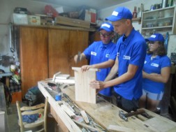 Pod opieką wspierających młodych ekologów wiedzą i doświadczeniem coucha i Pana Zbigniewa Fijewskiego - przedstawiciela Mazowiecko – Świętokrzyskiego Towarzystwa Ornitologicznego - w zaprzyjaźnionej stolarni przy pomocy różnych narzędzi młodzież montowała budki dla nietoperzy.