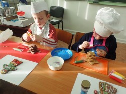 Piernikowe ludziki i choinki przygotowywali w poniedziałkowe przedpołudnie podczas warsztatów przedświątecznych uczniowie pierwszych klas Szkoły Podstawowej numer 27 w Kielcach. Sztukę cukierniczą przybliżał im Grzegorz Kozubek, technolog cukiernictwa i żywności, a także tata jednego z uczniów.
