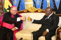 Arcybiskup Henryk Jagodziński zrelacjonował również rozmowę jaką odbył z Głową Państwa. – Pogratulowałem silnej pozycji Ghany w regionie, nie tylko ze względu na jej ekonomię, ale także, na trwałą demokrację, gdzie wyznawcy różnych religii żyją w pokojowej harmonii. Podkreśliłem wolę Kościoła Katolickiego kontynuowania swojego wkładu w rozwój społeczeństwa ghańskiego na polu edukacji i opieki zdrowotnej, oraz budowy trwałego pokoju. Zaznaczyłem, że jest to dla mnie szczególnym przywilejem móc rozpocząć moją misję w 140 rocznicę obecności Kościoła Katolickiego w Ghanie, oraz 40 rocznicę wizyty mojego rodaka w tym kraju, świętego Jana Pawła II. Pan Prezydent dziękując za pozdrowienia i serdecznie je odwzajemniając, wyraził zadowolenie z historycznych, wzajemnych relacji, szczególnie doceniając dokonania Kościoła Katolickiego na polu ochrony zdrowia i edukacji – dodaje.