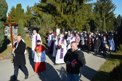 Podczas procesji wokół cmentarza, wierni wraz z biskupem modlili się za spoczywających na nim zmarłych. Po dojściu asysty do cmentarnego ołtarza rozpoczęła się Eucharystia.