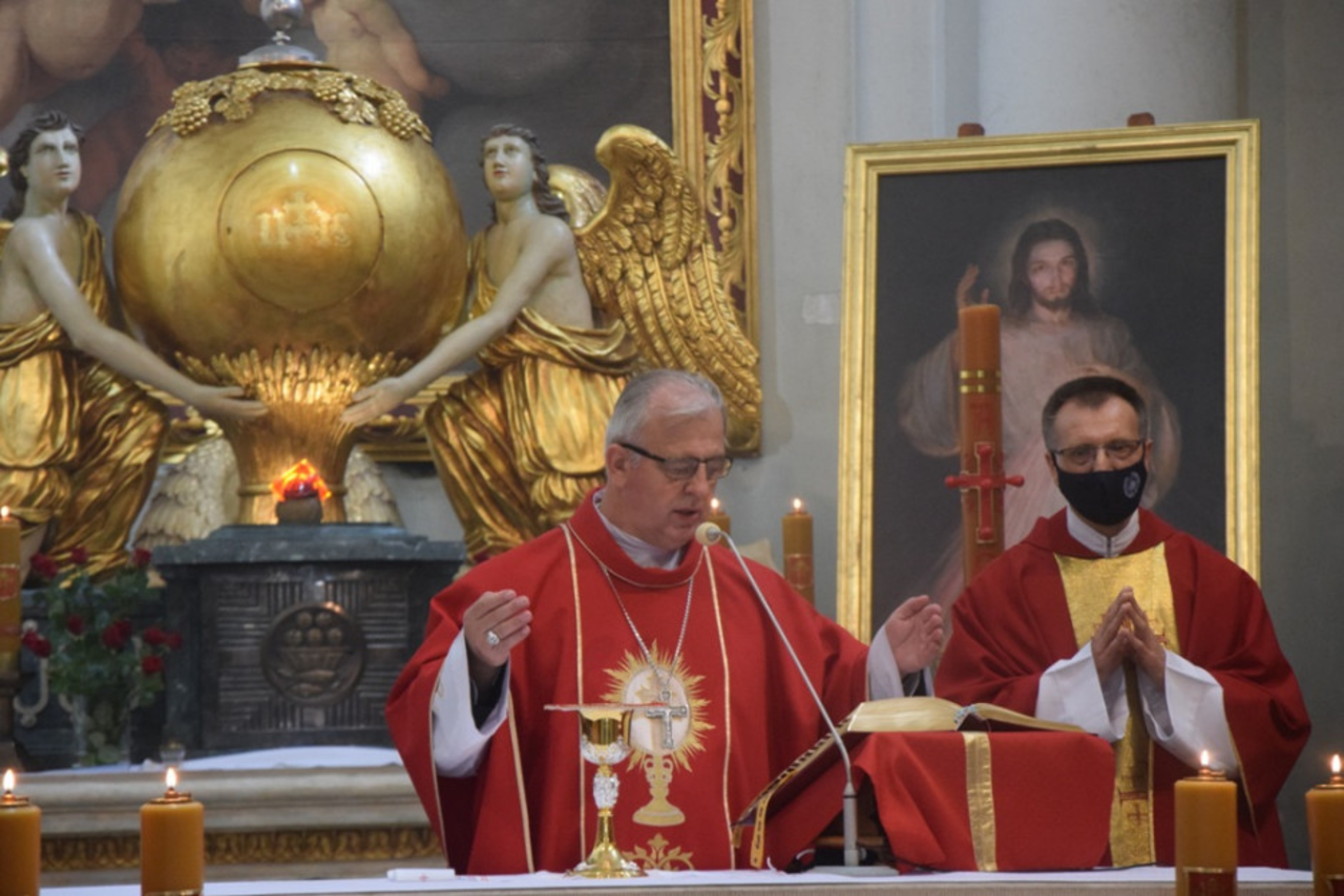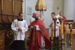 Najświętszej Ofierze przewodniczył biskup kielecki Jan Piotrowski. – To miejsce, które stawia wiele pytań i sprowadza wiele osób, bo krzyż dla chrześcijan jest znakiem odkupienia i łaski. Cieszy to, że mimo niepogody i wielu przeciwności, wciąż są wierni, którzy podejmują ten wysiłek i zmierzają do sanktuarium – mówił pasterz naszej diecezji.