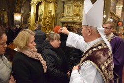 Podczas Mszy Świętej miał miejsce tradycyjny obrzęd posypania głów popiołem. Ma on długą tradycję w Kościele. Początkowo dotyczył jedynie osób pokutujących. W 1091 roku rozszerzył go na wszystkich papież Urban II. Popiół jest symbolem znikomości świata oraz pokory i pokuty.