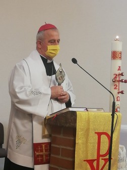 W kaplicy Domu dla Niepełnosprawnych biskupi odmówił Koronkę do Bożego Miłosierdzia razem z mieszkańcami, zawierzając chorych i cierpiących Panu Bogu i wspierając ich swoim słowem. Zapewnił również o codziennej modlitwie w trakcie pandemii i udzielił błogosławieństwa relikwiami św. Faustyny.