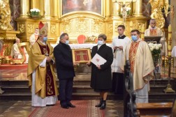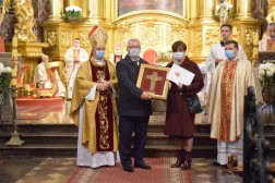 Pod koniec Eucharystii odbyło się wręczenie medali. Otrzymali je: Józefa Pasternak z parafii Pierzchnicy, Teresa i Marek Wojcieszyńscy z parafii w Łukowej oraz Ewa i Karol Warchołowie z parafii w Bodzentynie.