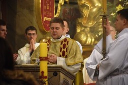 Na początku Eucharystii celebrans poświęcił kadzidło, kredę do oznaczania drzwi domów wiernych oraz wodę, którą pokropił zebranych. W wygłoszonej homilii mówił o tęsknocie serca