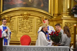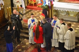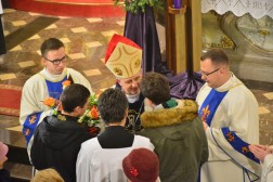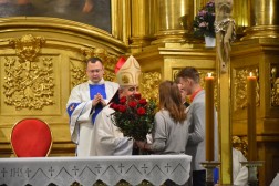 Po Mszy świętej przedstawiciele kapłanów, sióstr zakonnych oraz wszystkich wiernych wręczyli księdzu biskupowi kwiaty i złożyli życzenia.