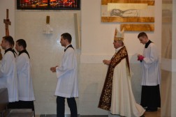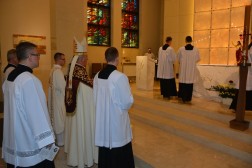 Uroczystości rozpoczęły się nieszporami odprawionymi przez ks. biskupa w Kościele pw. Św. Jana Pawła II. W słowach skierowanych do wiernych ordynariusz kielecki podkreślał, że podstawą duszpasterstwa akademickiego jest Słowo Boże. - Nie ma ono innego funadamentu, niż Chrzest Święty i łaska wiary. Nie ma też innego odżywczego źródła, aby trwać w Chrysusie i z Chrystusem we wspólnocie kościoła. Tym źródłem jest niezmiennie Słowo Boże i Eucharystia - mówił.