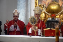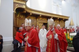 Około godziny 14 wszyscy spotkali się w Sanktuarium na Świętym Krzyżu. Tam wręczono odznaki dla najwytrwalszych pielgrzymów. O 15 rozpoczęła się uroczysta Msza Święta, koncelebrowana przez biskupów: sandomierskiego Krzysztofa Nitkiewicza, kieleckiego Jana Piotrowskiego, ojców Oblatów ze Świętego Krzyża oraz kapłanów, którzy pielgrzymowali razem ze swoimi grupami.