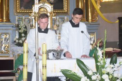 W Lisowie z pielgrzymami spotkał się biskup Marian Florczyk. O godzinie 11:30 przewodniczył Eucharystii. W trakcie Mszy Świętej przyjął do Liturgicznej Służby Ołtarza parafii św. Mikołaja w Lisowie dwóch nowych ministrantów Kamila i Filipa.