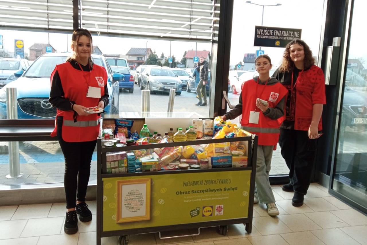 Przez dwa dni, w piątek i sobotę 17 i 18 marca, do koszy ustawionych w sklepach można było wrzucić produkty spożywcze o długiej dacie ważności, takie jak ryż, kasza, mąka czy makaron. Do podzielenia się snimi zachęcali klientów wolontariusze Caritas. Wśród nich byli uczniowie Szkoły Podstawowej nr 27 imienia Krzysztofa Kamila Baczyńskiego w Kielcach, którzy czuwali nad przebiegiem akcji w markecie "Lidl" przy ulicy Warszawskiej.