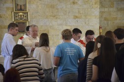 Bezpośrednio po Mszy młodzież odśpiewała hymn KSM i oddała cześć relikwiom swojego patrona, który od tego dnia będzie towarzyszył działaniom i formacji oddziałów KSM naszej diecezji.