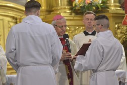 – Niech słowa modlitwy święceń, jakie wybrzmią za chwilę, wyznaczają wam plan posługi. Kochajcie nade wszystko modlitwę osobistą i brewiarzową. Niech cechuje was czystość serca, dzięki temu prawdziwie pokochacie wszystkich wiernych, a wspólnota kapłańska będzie miejscem więzi braterskich. Drodzy bracia diakoni, miejcie pewność, że Kościół kielecki jest z wami w osobach waszych rodziców, całych rodzin, przyjaciół i parafian – dodał.
