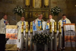 Czterdziestą, jubileuszową pielgrzymkę rozpoczęła tradycyjnie Msza Święta w bazylice kolegiackiej Najświętszej Maryi Panny w Wiślicy. Odprawił ją biskup Jan Piotrowski, który wygłosił również homilię.