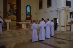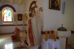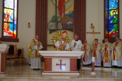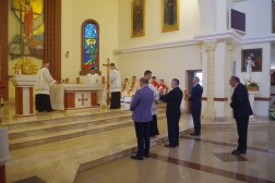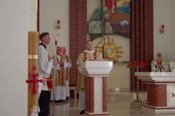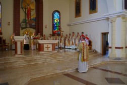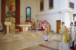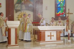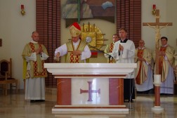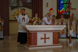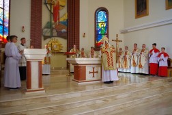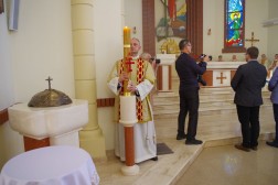 Biskup Jan Piotrowski poświęcił i namaścił krzyżmem nowy ołtarz, po czym dokonał jego okadzenia, a następnie, w celu dopełnienia konsekrancji, zapalone zostało światło Chrystusa. W swojej homilii skierowanej do zgromadzonych wiernych ksiądz biskup podkreślał wagę dzisiejszego dnia, a także znaczenie Chrystusa Odkupiciela.