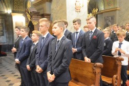 Podczas Mszy Świętej uczniowie pierwszych klas złożyli uroczyste ślubowanie. Wręczono także nagrody za najwyższe średnie ocen w minionym roku szkolnym. – Wielką mądrością założycieli szkoły było to, aby nadać jej imię św. Stanisława Kostki, który jest wzorem dla młodzieży i dzieci. Dzięki tej decyzji podjętej bardzo dawno temu staramy się widzieć w naszym patronie przykład dla uczniów. Jego hasło „Do wyższych rzeczy zostałem stworzony” może przyświecać całej polskiej młodzieży – tłumaczy ks. Jacek Kopeć, dyrektor ZSKDK.