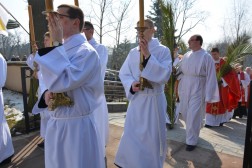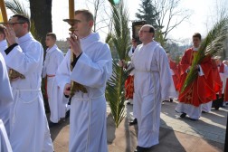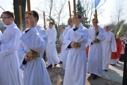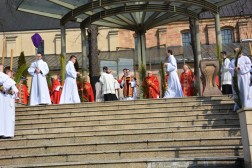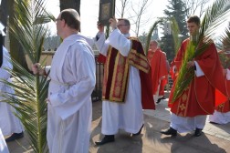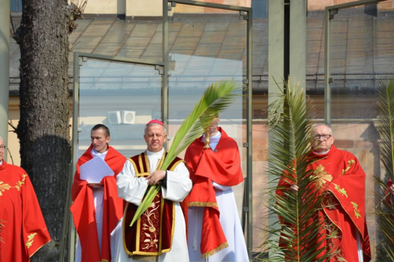 Niedziela Palmowa wprowadza nas w atmosferę Wielkiego Tygodnia. - W dniu dzisiejszym gromadzimy się, aby z całym Kościołem rozpocząć obchód Misterium Paschalnego. Dzisiaj Chrystus wjechał do Jerozolimy, aby tam umrzeć i Zmartwychwstać. Wspominając to zbawcze wydarzenie, z głęboką wiarą i pobożnością pójdźmy za Panem, abyśmy uczestnicząc w Tajemnicy Jego Krzyża dostąpili udziału w zmartwychwstaniu i życiu - powiedział ks. biskup Jan Piotrowski tuż przed poświęceniem palm, które wierni przynieśli na pamiątkę wjazdu Jezusa do Jerozolimy.
