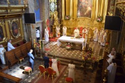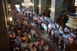 O godzinie 13 pątnicy uczestniczyli w Mszy Świętej w kieleckiej katedrze. Pielgrzymów powitał biskup kielecki Jan Piotrowski. W trakcie Eucharystii sakrament małżeństwa przyjęła para pielgrzymów. – Jesteśmy świadkami wyjątkowej uroczystości, dzięki tym dwóm, młodym ludziom, którzy wybrali ten wyjątkowy dzień, aby u stóp Matki Bożej Łaskawej Kieleckiej przysięgać sobie miłość i wierność. Niech to wasze święto sprowadzi na was obfitość Bożych łask – mówił biskup kielecki Jan Piotrowski.