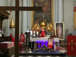 Po dotarciu na Święty Krzyż, w Sanktuarium Drzewa Krzyża Świętego odprawiona została uroczysta Msza Święta, której przewodniczył biskup Jan Piotrowski. Pasterz diecezji kieleckiej w swojej homilii odniósł się do walczących z uzależnieniami: