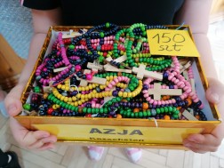 – Najpierw nawleka się jeden duży koralik, później trzy małe, jeden duży i dziesięć małych. Ma być pięć takich dziesiątek. Różańce, które zrobiliśmy mają różne kolory i są drewniane. Pomagałam je robić, żeby dzieci z innych krajów mogły się na nich pomodlić – relacjonuje.