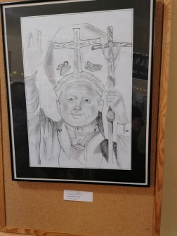 – 30 lat temu Jan Paweł II odwiedził Kielce i Masłów, a ta wystawa jest wspomnieniem tej wizyty. Mamy do obejrzenia film i przepiękne prace wykonane przez naszych uczestników. Niektóre są wypalane w drewnie, ale są też szkice i rysunki – mówi Magdalena Fogiel-Litwinek, wojewódzki komendant OHP.