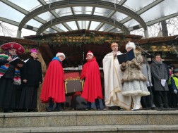 Po zakończeniu Mszy Świętej wierni przenieśli się na plac Jana Pawła II. Tam Kacper, Melchior, Baltazar oraz czwarty zwany Artaban pokłonili się dzieciątku Jezus i złożyli swoje dary. Spotkanie zakończyło wspólne śpiewanie kolęd.