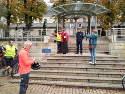 Świętokrzyscy rowerowi pielgrzymi wyruszyli dzisiaj na Święty Krzyż. Po mimo niesprzyjającej pogody na placu Jana Pawła II stawiła się liczna grupa osób, która na czele z księdzem biskupem Marianem Florczykiem wyruszyła w drogę.