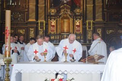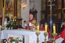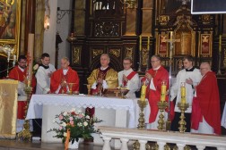 Eucharystię koncelebrowali biskupi pomocniczy diecezji kieleckiej - biskup Marian Florczyk i biskup Andrzej Kaleta. – Diecezjalna pielgrzymka kapłanów ma wymiar bardzo bliskiej relacji do Boga, ale też wymiar integracyjny. Spotykamy się z księżmi z diecezji kieleckiej, co stanowi ogromną siłę dla każdego z nas. To spotkanie to ogromny dar, który może zaowocować spokojem i radością wewnętrzną dla nas wszystkich – mówił biskup Marian Florczyk.