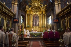 W bazylice katedralnej zgromadzili się członkowie kieleckiej kapituły, ale również sąsiednich kapituł: miechowskiej i wiślickiej. Eucharystię odprawił i homilię wygłosił biskup Jan Piotrowski. Pasterz naszej diecezji przypomniał historię głównej świątyni Kościoła kieleckiego.