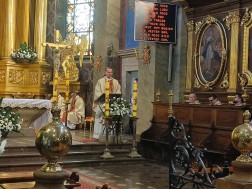 Uroczystość rozpoczęła się Mszą Święta w Bazylice Katedralnej pod przewodnictwem Biskupa Kieleckiego Jana Piotrowskiego, który modlił się w intencji wszystkich zgromadzonych. Homilię zaś wygłosił ks. Marcin Boryń. Duchwony podkreślił, że jesteśmy ludźmi głodnymi Słowa Bożego i czekamy na spotkanie z Jezusem Chrystusem, by właśnie tym Słowem nas napełnił. Byśmy wychodząc z Kościoła czulli się nakarmieni. Ks. Boruń zaznaczył swoje przekonanie, że to Słowo Boże nadaje życiu sens wielu ludziom w dzisiejszych czasach. Tłumy zgormadzone na dzisiejszym wydarzeniu mocno to udowodniły.