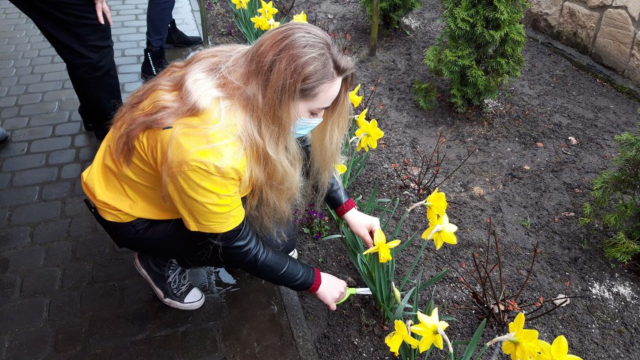 Kolejny etap Pól Nadziei wolontariusze rozpoczęli ścinając żonkile, będące symbolem akcji, które zostały zasadzone jesienią.