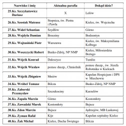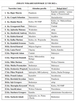 Lista zmian księży wikariuszy: